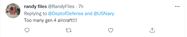 也有网友认为,美国航母甲板上的飞机“过于老旧”:“(里面)太多第四代战斗机!!!”