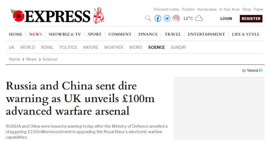 《每日快报》用“让人难以相信”来形容这份合同的金额,还宣称这项对尖端电子战系统的投资将大大加强英国海军的探测、识别能力和无线电通信能力。还宣称这是在“向中俄发出警告”。