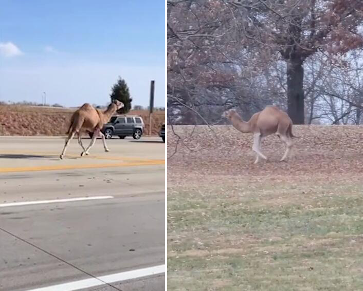 美国一骆驼从农业中心逃跑 闲逛24小时后被抓回