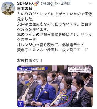 日本外相在泽连斯基讲话时打哈欠被网民炮轰,“日本之耻”冲上推特热搜