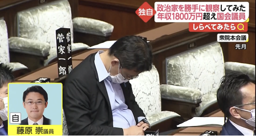 值得一提的是,日本议员在国会会议上打瞌睡的例子并不罕见。日本富士新闻网(FNN)2月18日就曾发布报道,追踪观察日本自民党众议员藤原崇、参议员丸川珠代等人在国会会议上打瞌睡的追踪报道。↓