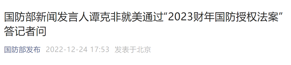 四、国防部新闻发言人谭克非就美通过“2023财年国防授权法案”答记者问