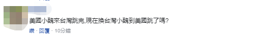 也有岛内网友对此表示,“美国小丑来台湾跳完,现在换台湾小丑到美国跳了吗?” ↓