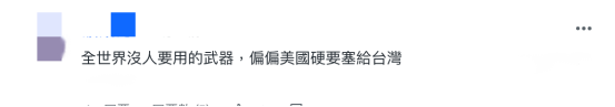 还有网民讽刺道,“全世界没人要用的武器,偏偏美国硬要塞给台湾”。