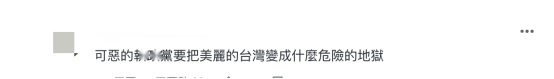 对此,有岛内网民在台媒留言区批评民进党当局称,“可恶的‘执政’党要把美丽的台湾变成什么危险的地狱”。