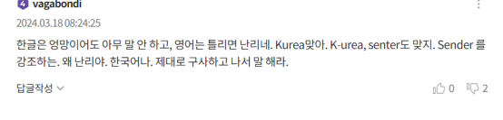 另外一位网民则说,“为什么当指示牌上的韩语出现错误时,大家都没有太大反应,而一旦是英语出错,就引发了强烈的反应?(韩国人)应该先提高自己的韩语使用能力。”