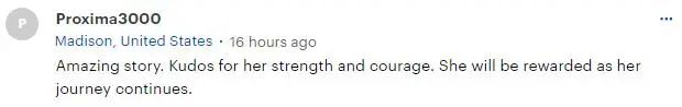 神奇的故事。她的能量和勇气值得称赞。随着旅程的继续,她终将得到回报。