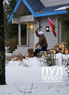 Telegram账号“Pul Pervogo”26日发布图片显示,卢卡申科正在劈柴。