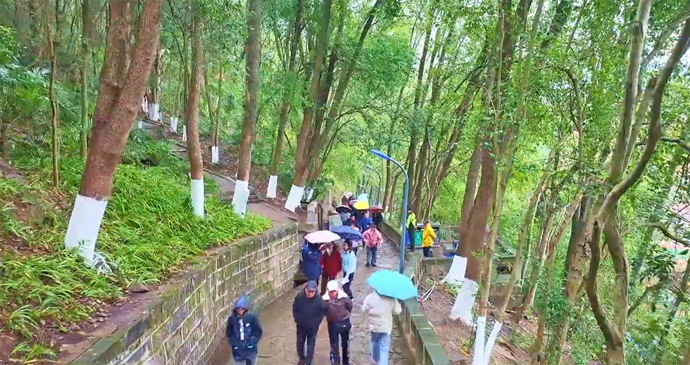 上午9时许,达州市区凤凰山已是人声鼎沸。蜿蜒的山路上,市民们扶老携幼,摩肩接踵,向着山顶进发。尽管天空飘着细雨,却丝毫未能阻挡人们登高的热情。山峰间云雾缭绕,若隐若现的绿意点缀其中,宛如一幅水墨丹青,为这场千年民俗活动增添了几分诗意。