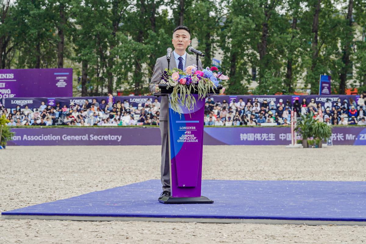 本次,2025浪琴表国际马联场地障碍世界杯中国联赛北京站由国际马术联合会(FEI)、中国马术协会、北京市体育局联合主办。在开幕式上,国际马术联合会主席、国际奥委会委员、夏季奥林匹克国际单项体育联合会协会主席英格玛·德沃斯作为联合主办方致辞。