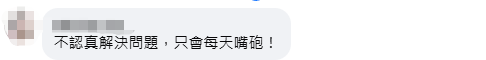 也有网友批评民进党,“不认真解决问题,只会每天嘴炮”。