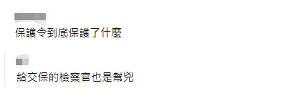 此事在岛内也引起不少网友讨论,有网友说,“‘保护令‘到底保护了什么”“给交保的检察官也是帮凶”。