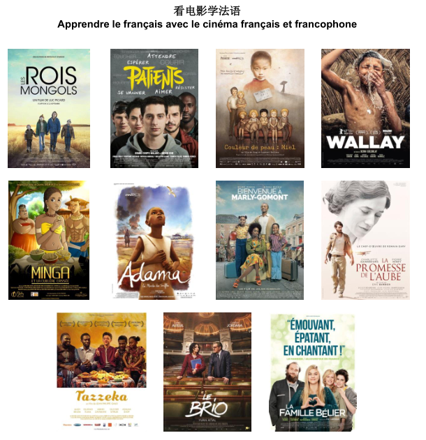 项目遴选出的 11 部充分代表法语电影多样性的新片,从 2019 年 3 月起在北京法国文化中心和多所中学、高校中进行放映。配有中法文字幕的这些影片成为了富有趣味性的教学素材,把情感和交流放在了语言学习的核心位置。