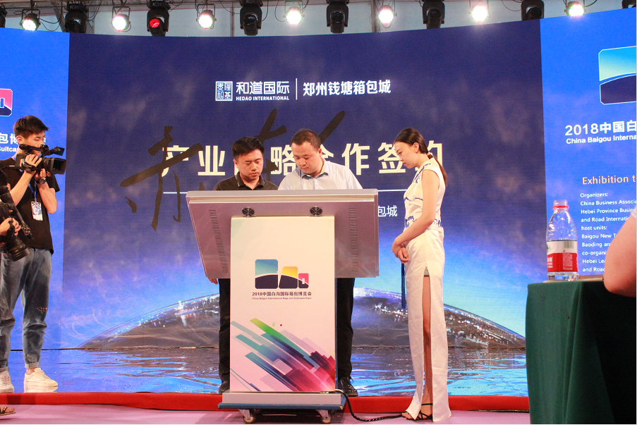 为推动白沟千亿级销售额市场的转型升级,增强市场企业服务能力,提升白沟市场自主创新能力,2018年6月28日,白沟新城举办了第四届中国白沟国际箱包博览会,本届博览会由中国商业联合会、中国轻工业联合会、中国皮革协会、河北省商务厅、保定市人民政府、和道国际商贸有限公司联合主办,河北省白沟新城管委会承办,保定和亿展览服务有限公司执行承办。