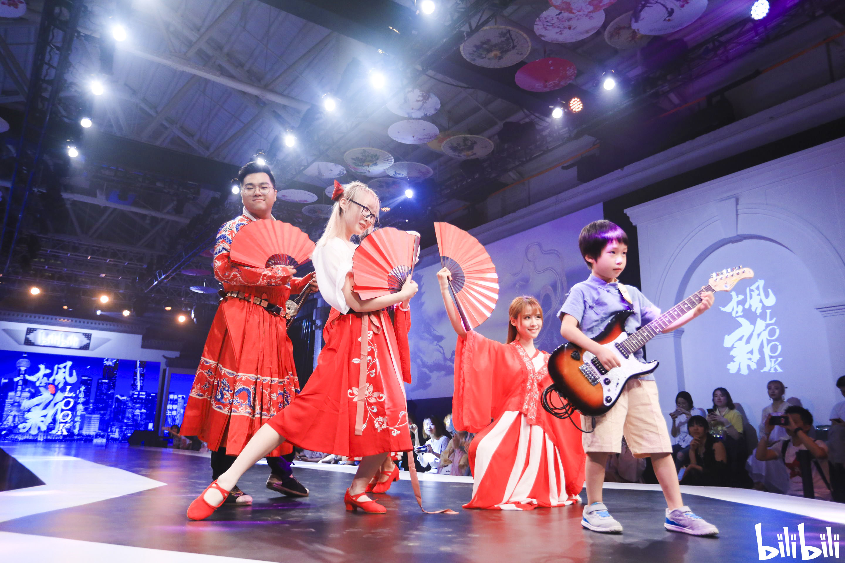 不仅仅是独具风格的走秀,现场的节目表演也是将古典与现代流行文化相碰撞融合。二胡再辅以一名6岁UP主弹奏的电吉他,一首古风歌曲《寄明月》被赋予了全新的表达。
