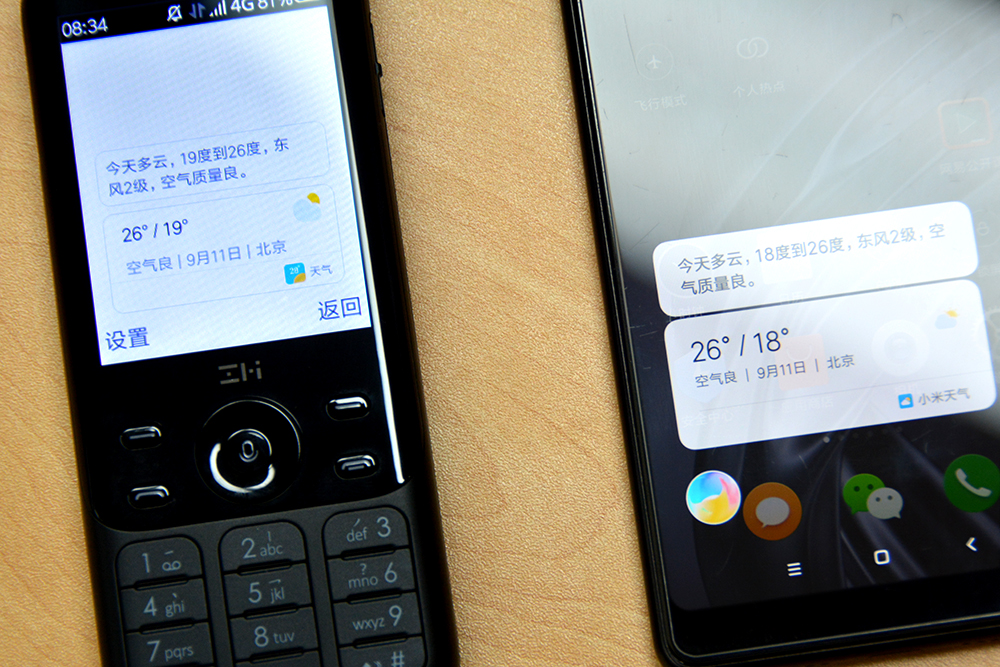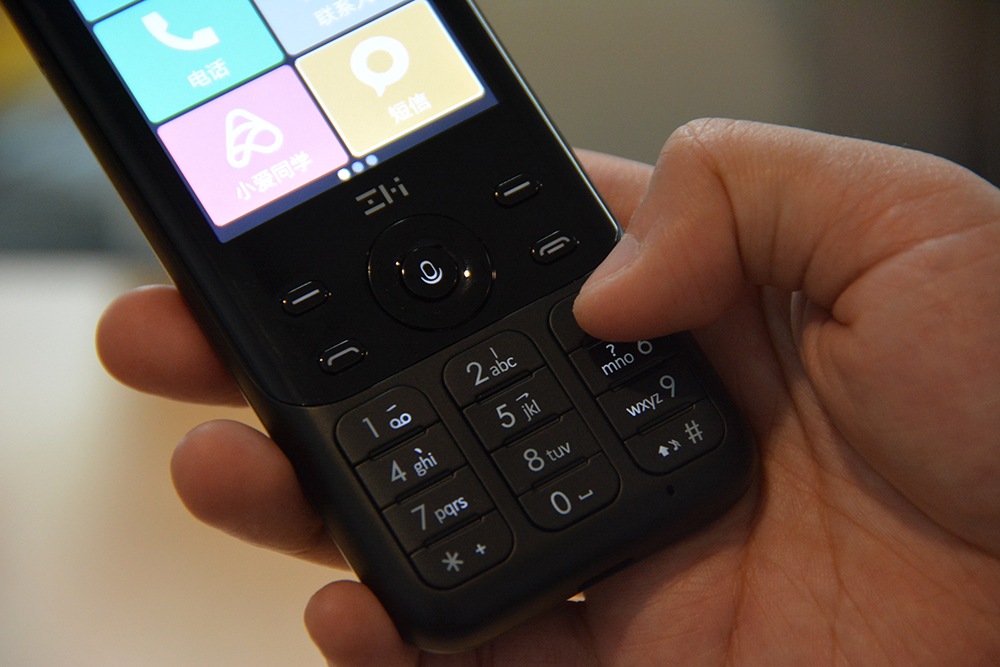 除了不能进行“微信给XXX发5块钱红包”这种明显不现实的操作,Z1的小爱同学问天气、打电话、设闹钟、听音乐、控制智能家居等基本技能一应俱全,在屏幕上能看见自己的语音转成文字也是一种接近小米智能手机的体验。通过观察发现,Z1的语音识别准确率很高。键盘右下角的麦克风正对用户,是功能机经典的布局,正好也增加了语音交互中收音的指向性。