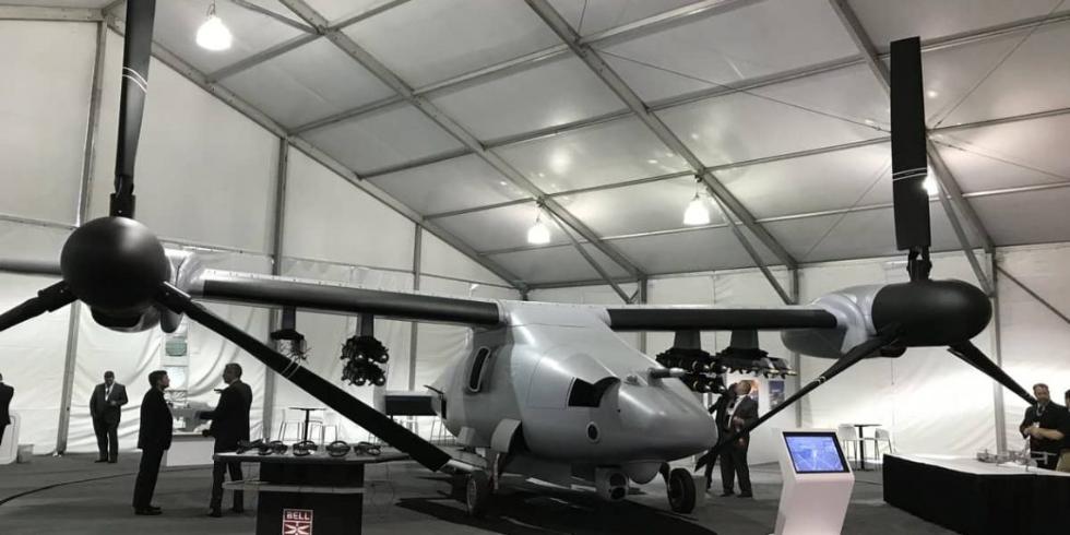 【环球网军事综合报道】9月25日,美国贝尔直升机公司在2018现代海事展(Modern Day Marine)上展示了V-247无人倾转旋翼机的全尺寸模型,该机和贝尔公司的UH-1Y尺寸相当,可以承担综合防空、电子战、空中预警和精确打击等任务。