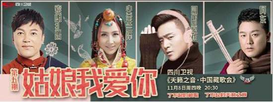 随着《天籁之音中国藏歌会》“藏歌新流行”主题篇的节目完结,今晚20:30天籁之音在四川卫视继续唱响,以“姑娘我爱你”为主题的节目将准时与各位观众见面。在本期节目中,“全能偶像”扎西顿珠邀请到了“温婉情歌女声”央金兰泽,“原生态灵魂歌手”索朗扎西,“高原魅力情歌王”四郎贡布以及“实力情歌唱将”阿东,用经典之声诠释对爱的定义,把说不出口的情谊化成情歌唱给你听。