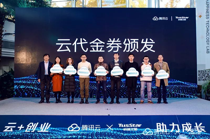 启迪之星副总经理刘雪良和腾讯云创投业务中心总监许小川向启迪之星创业企业颁发腾讯云代金券