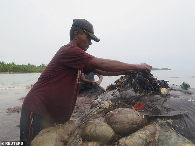 【环球网科技综合报道】据英国《每日邮报》11月20日报道,印尼东海岸惊现一头死鲸胃里竟有一团13磅重(约11斤重)的塑料垃圾,其中包括115个塑料杯和两只拖鞋。