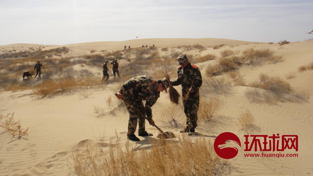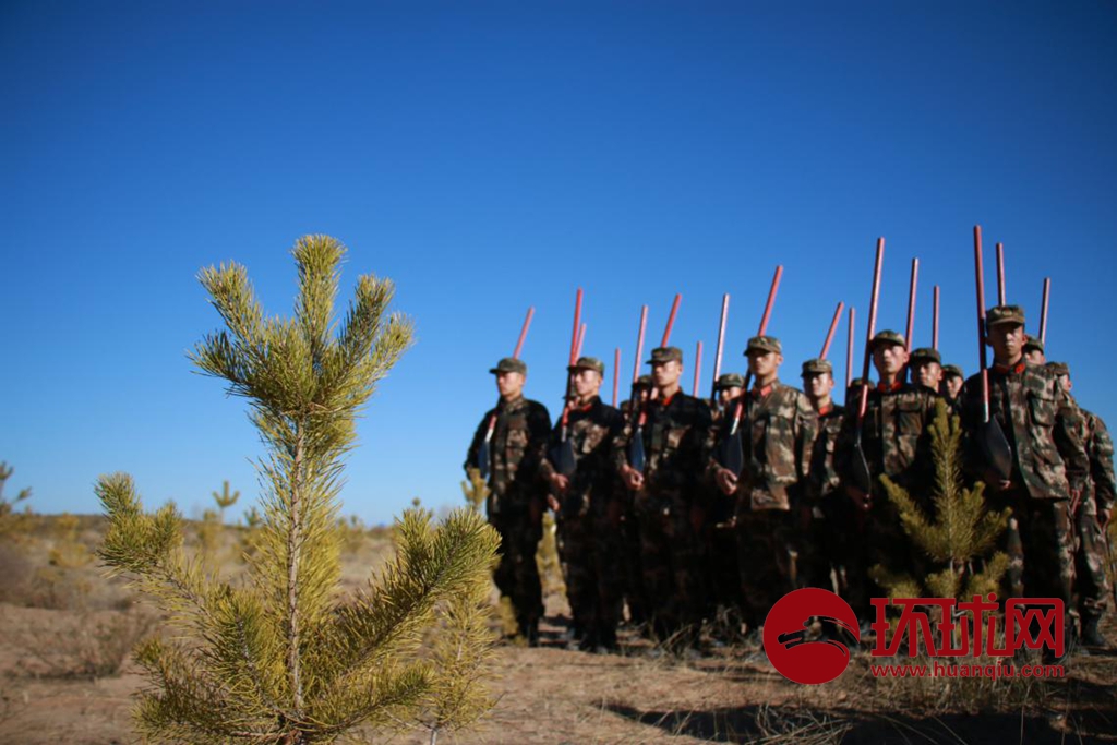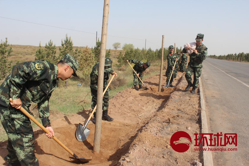 为响应党的号召,改变驻地生态,每年春回时分,鄂尔多斯支队武警官兵都会扛着铁锹,挑着水桶走出营区赴沙漠植树,一茬接一茬,一代又一代,不论冷暖、不分四季,始终坚守在治沙之路上。新兵、老兵共同守卫着这一片热土。有的退伍官兵已经深深的爱上了这里,扎根沙漠植树达十余载。