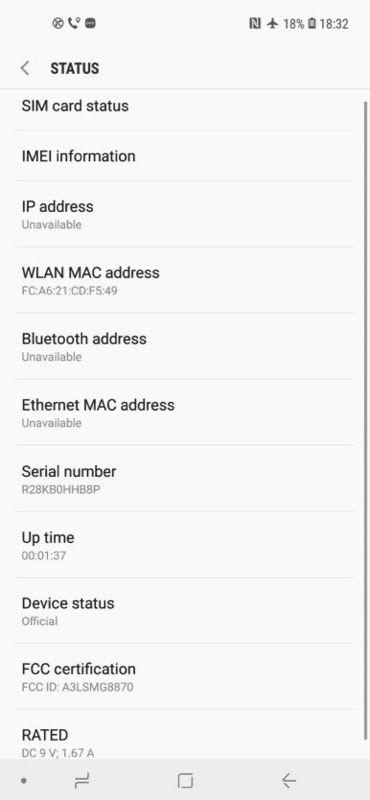 下方UI 截图,来自 Galaxy A8 的 FCC 文档。可见顶部状态栏左上角的通知图标,被整体往右挪动了一些。