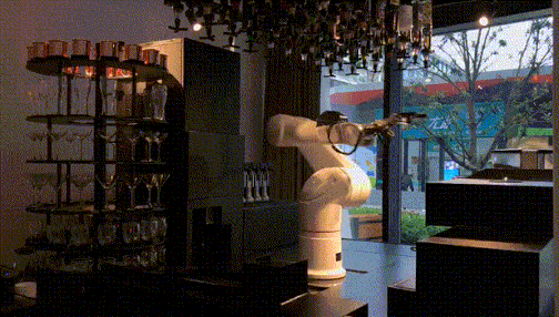 与此同时,此前已经亮相过的客房小管家天猫精灵等候在房间,住客可以通过天猫精灵控制房间温度、灯光、窗帘、电视等,动口不动手。如果住客需要多些护肤品、缺双拖鞋、叫个餐等,响应服务的或许是机器人。在餐厅,给客人上菜的也有机器人服务员。去大堂演艺吧,机器人调酒师能制作多种不同的酒类和咖啡。