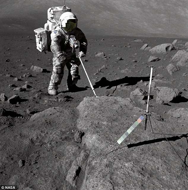 1972年12月在阿波罗17号执行任务期间,身为地质学家的宇航员哈里森•施密特,使用可调节的采样铲来检索月球样本。该团队称,当宇航员访问月球时,带静电的月球土壤紧贴着他们的太空服。吸入月球尘埃可能会给在月球上长时间停留的宇航员带来健康问题。