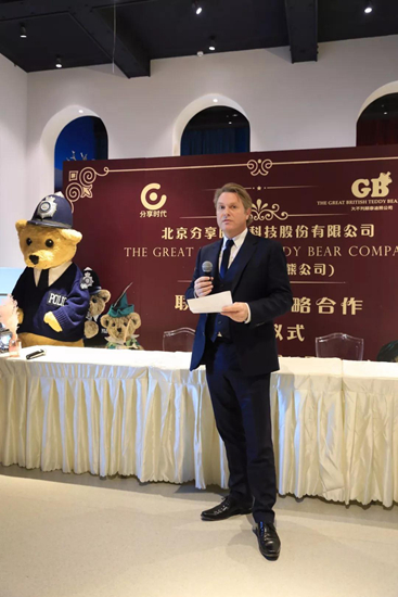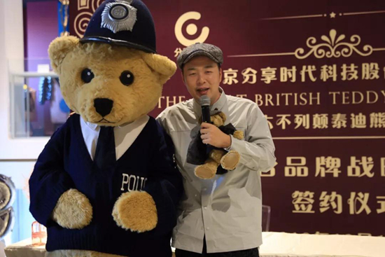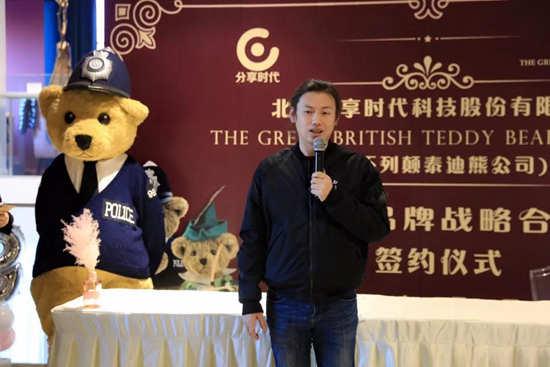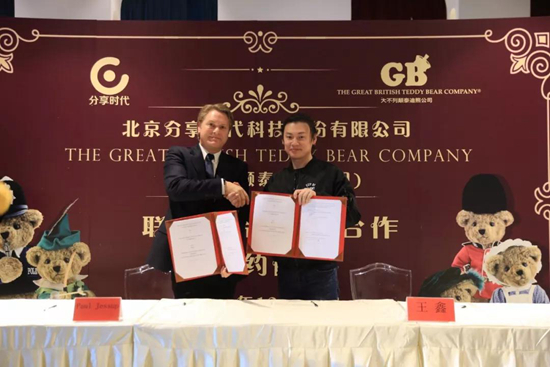 2月18日,北京分享时代科技股份有限公司与The Great British Teddy Bear Company(大不列颠泰迪熊公司)联合品牌战略合作签约仪式在北京举行,双方就名人IP与泰迪熊IP品牌联合达成深度战略合作。