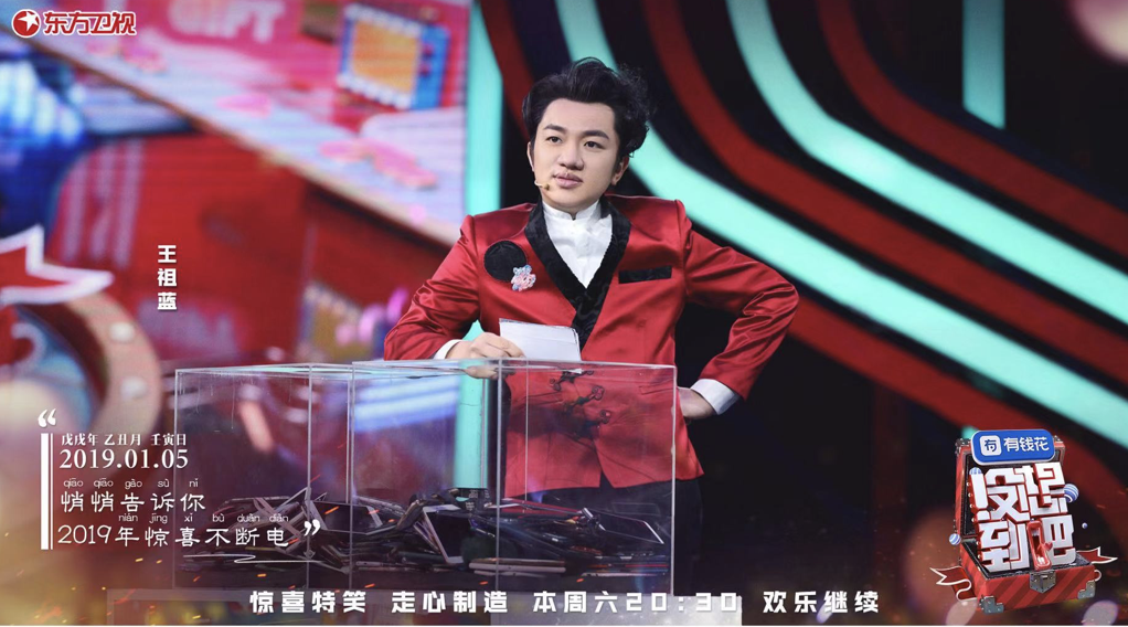 全能艺人王祖蓝在东方卫视播出的全民互动大型综艺节目《没想到吧》,携手张绍刚、李诞、池子组成“欢乐无限男团”,联合凤凰传奇一起给观众送上惊喜和欢乐。