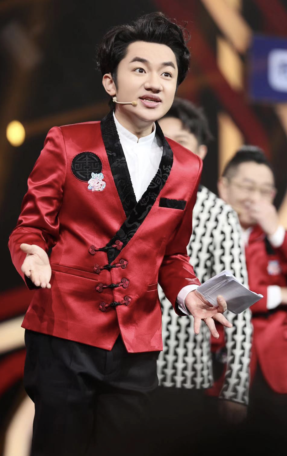 在“一起来欢唱”环节,王祖蓝现场为凤凰传奇选择帮唱观众、同张绍刚、李诞和池子四人组成欢唱评委团。面对极度自信又各具特色的接唱观众,王祖蓝不时幽默互动上演风趣点评,引发台下笑声不断。