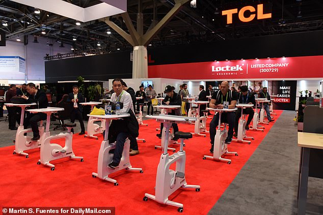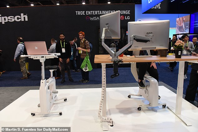 【环球网科技综合报道】据《每日邮报》1月10日报道,中国公司乐歌在美国拉斯维加斯国际消费类电子产品展览会上展出了一台健身办公桌,使用者可以一边办公,一边骑自行车。