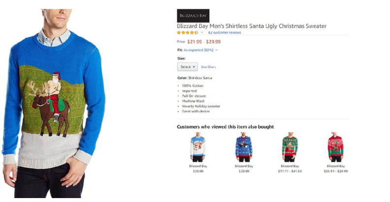 “像普京一样赤裸上半身骑在马背上更好。快穿上这件毛衣来我公司的节日派对吧!”,一位热情的买家写道。