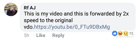 不久,戈亚尔的脸书评论区出现了一个不太和谐的声音,有人自称是该视频的拍摄者,现在的播放速度是原先的两倍。
