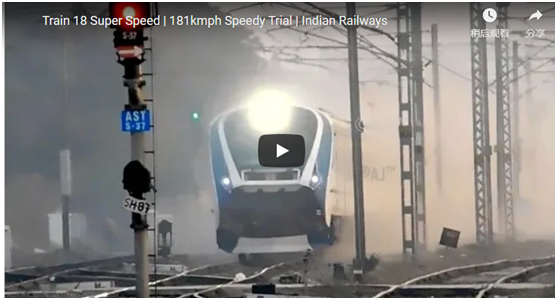 “它是鸟儿,它是飞机……看啊,‘印度制造’倡议下的第一辆高速列车——Vande Bharat Express,它以闪电般的速度飞驰而过。”↓