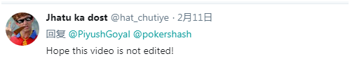印度网友着急地催促他,“先生,人们说这是被剪辑的,不澄清吗?”↓