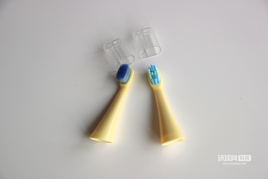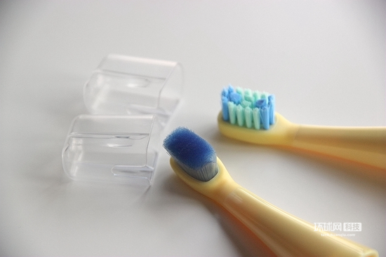 随机附送的刷头上方的刷毛柔软细腻,可全面呵护宝宝的牙龈。包装内共有两个刷头可供选择,一个是来自德国Pedex的超软刷毛,主打精细刷感。另一个是美国杜邦标准刷毛,主打彻底清洁。