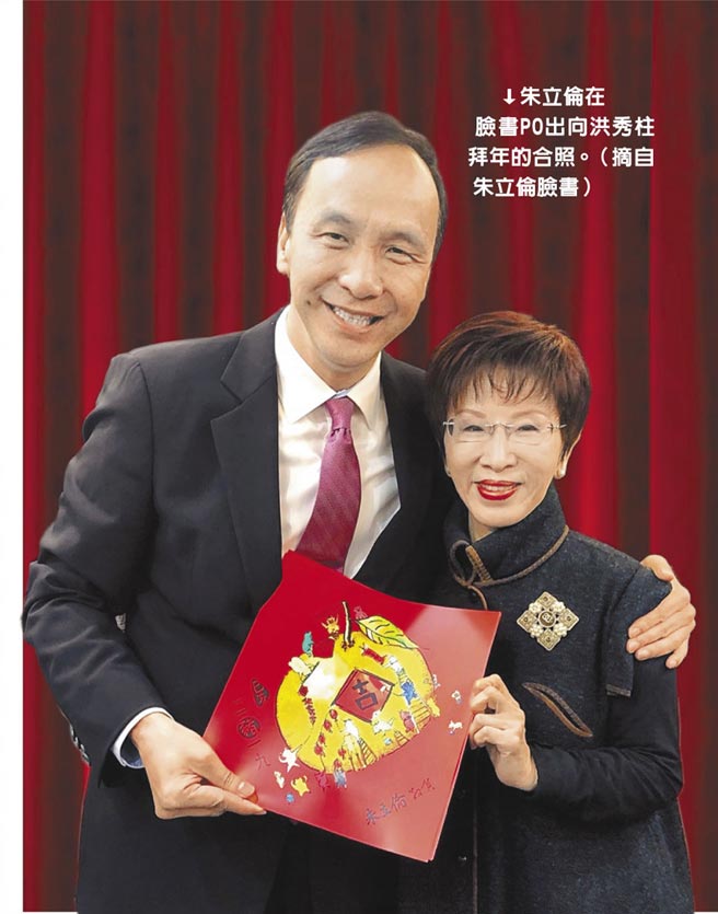 马、王“破冰”之后,报道称,前新北市长朱与国民党前主席洪秀柱也上演了“和解大戏”。朱立伦25日在脸书发出向洪秀柱拜年时二人的合照,赞洪气色佳,他还送上祝福的春联,“一起诸事大吉,过个好年!”,并笑称,两人是“最萌身高差”“洪阿姨交代要拍美一点才行”,希望一扫2015年“换柱”阴霾。