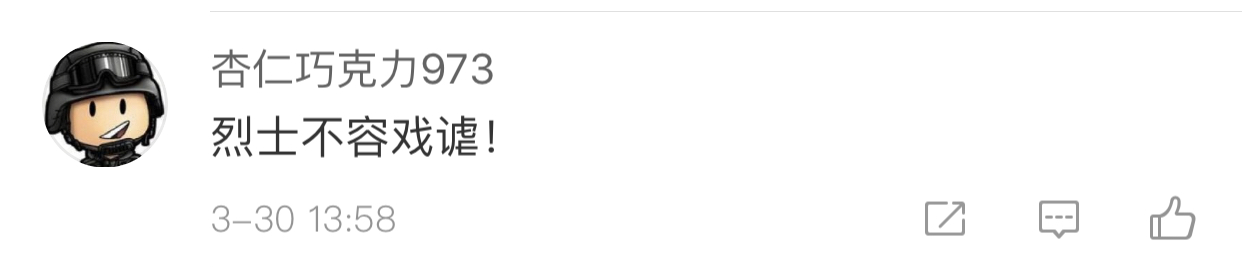 【环球网综合报道】3月30日上午10时30分,有网友在微博发布侮辱英烈的言论,引起网友强烈不适。