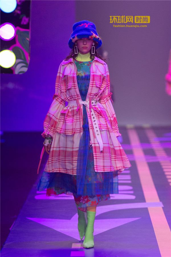本系列色彩依然丰富多彩,充满趣味的印花拼接,以最直接的方式来还原设计师脑中的场景点滴,张扬但不失活力趣味,丰富的元素堆叠,让人竟有种身临其境的奇妙感觉。材质的互相搭配也让人种耳目一新,例如本来给人厚重臃肿的羽绒衣改装成了背心裙,羽绒衣沉闷的颜色被可爱的印花所覆盖,下身拼接上了飘逸的少女系裙摆,为冬日加持一份快乐的正能量。除此之外,雪纺等标志性材质继续沿用,为独立、率真、敢作敢为又无比热爱生活的女性提供一种有趣、张扬、鲜活的色彩审美,同时极具少女感的生活方式。