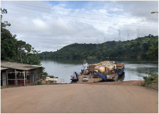 轮渡上埃挨挤挤,很多当地人也挤了上来,有的在栏杆旁边聊天边看风景,有的女子在肆无忌惮地奶孩子,让我想起了我国某些乡村的渡口。几辆明显属于电力工程用的大型特种车辆占据着轮渡的中心位置,黝黑的巴西司机略带傲气而又宽厚地看着无组织无纪律的村人,俨然带着一种特殊的优越感,而村人们也好奇而又有些羡慕地看着坐在驾驶楼里,身穿制服的他们-- 在这里,能为一家大公司工作,意味着优厚的薪酬和较高的社会地位。我在欣古见到在国网巴控公司工作的巴西籍员工,无一不为穿着带有“SGCC(中国国家电网公司)”标志的工作服而展示出自豪之态。