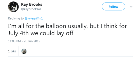 “通常我都是支持(放飞)气球(特朗普宝宝)的,但我认为7月4日我们应该消停下。”