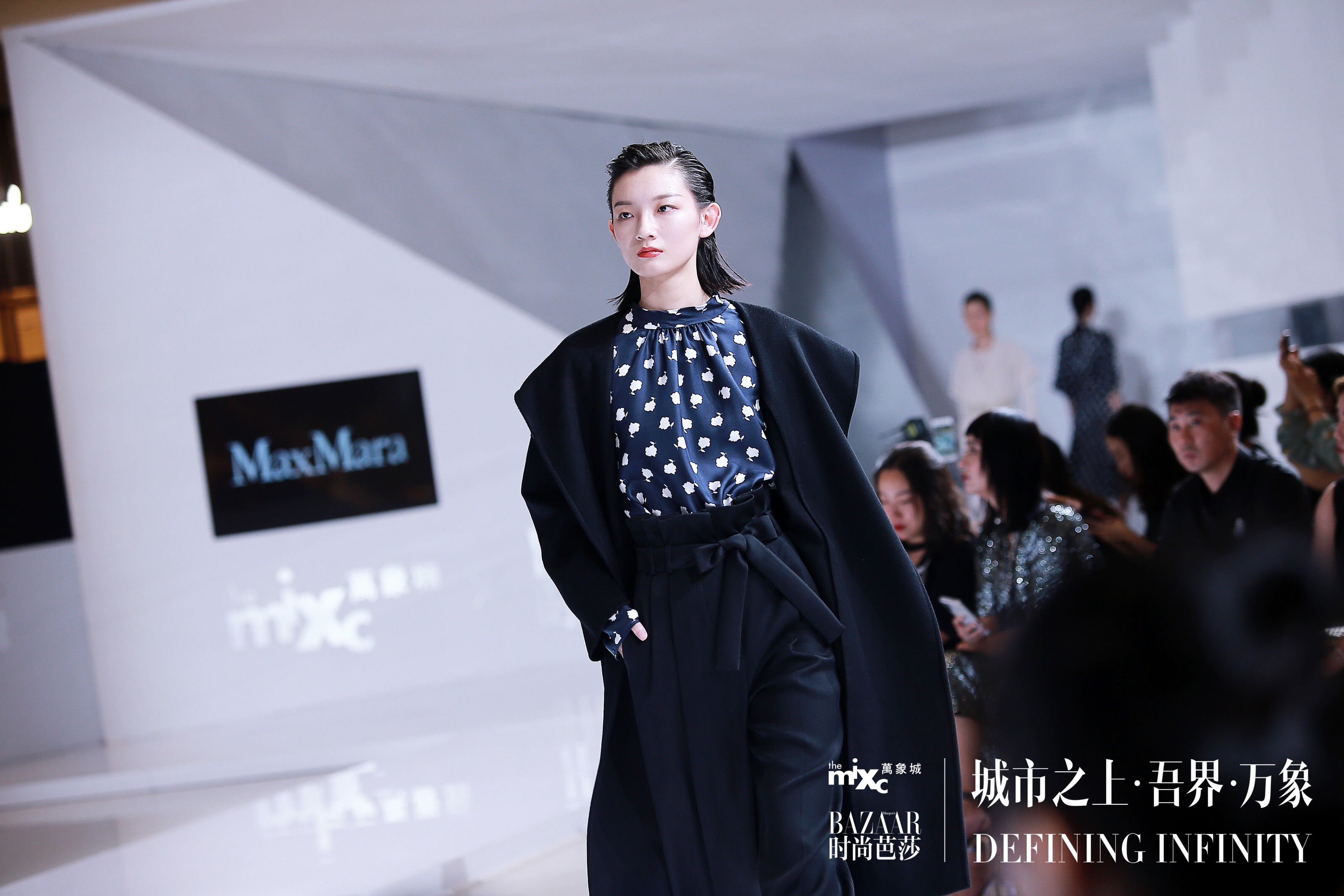 时装秀由曾与DIOR、ESCADA、BALLY等顶级品牌合作过的中国首席时尚编导王红民亲力指导。当晚,意大利风尚品牌MaxMara秋冬新品惊艳亮相:本季新品将经典款式中的经典色调驼色、黑色、白色、褐色,与传统印花图案融合在一起,将粗花呢、活力十足的格纹、人造鳄鱼纹和斑马纹进行了大胆混搭。通过极具力量感的肩部廓形、齐脚踝搭配着长筒靴和修长的马球衫和羊驼毛绒、驼毛和羊绒巧妙地与皮革缝合,为干练的都市职业女性,创造出兼具时髦与实用的通勤装扮。