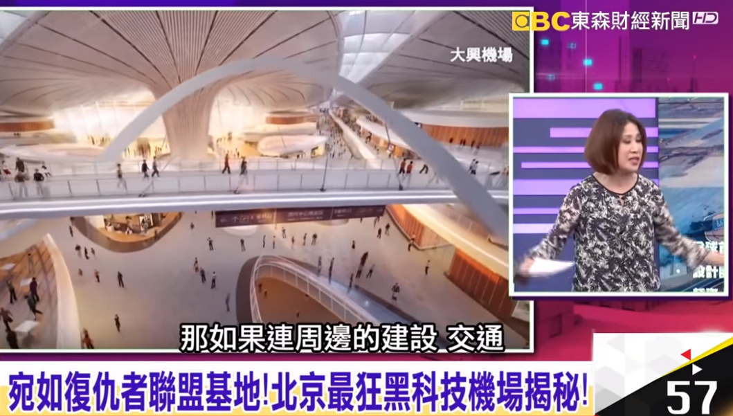 主持人陈斐娟和台湾财经分析师赖宪政在节目中,详细介绍了大兴国际机场的建造规模、设计细节和科技功能,全程不住惊叹,“有够厉害”、“超级厉害的”。