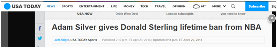 2014年4月29日,刚刚就任NBA总裁仅两个月的肖华召开发布会,做出了被美媒称作“最为严厉处罚”的决定:终身禁止斯特林涉足一切与快船队以及NBA有关的事务,并处以250万美元罚款。