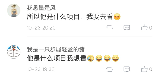 还有网友充满好奇,在评论区求助发问,“他是什么项目我想看!”↓