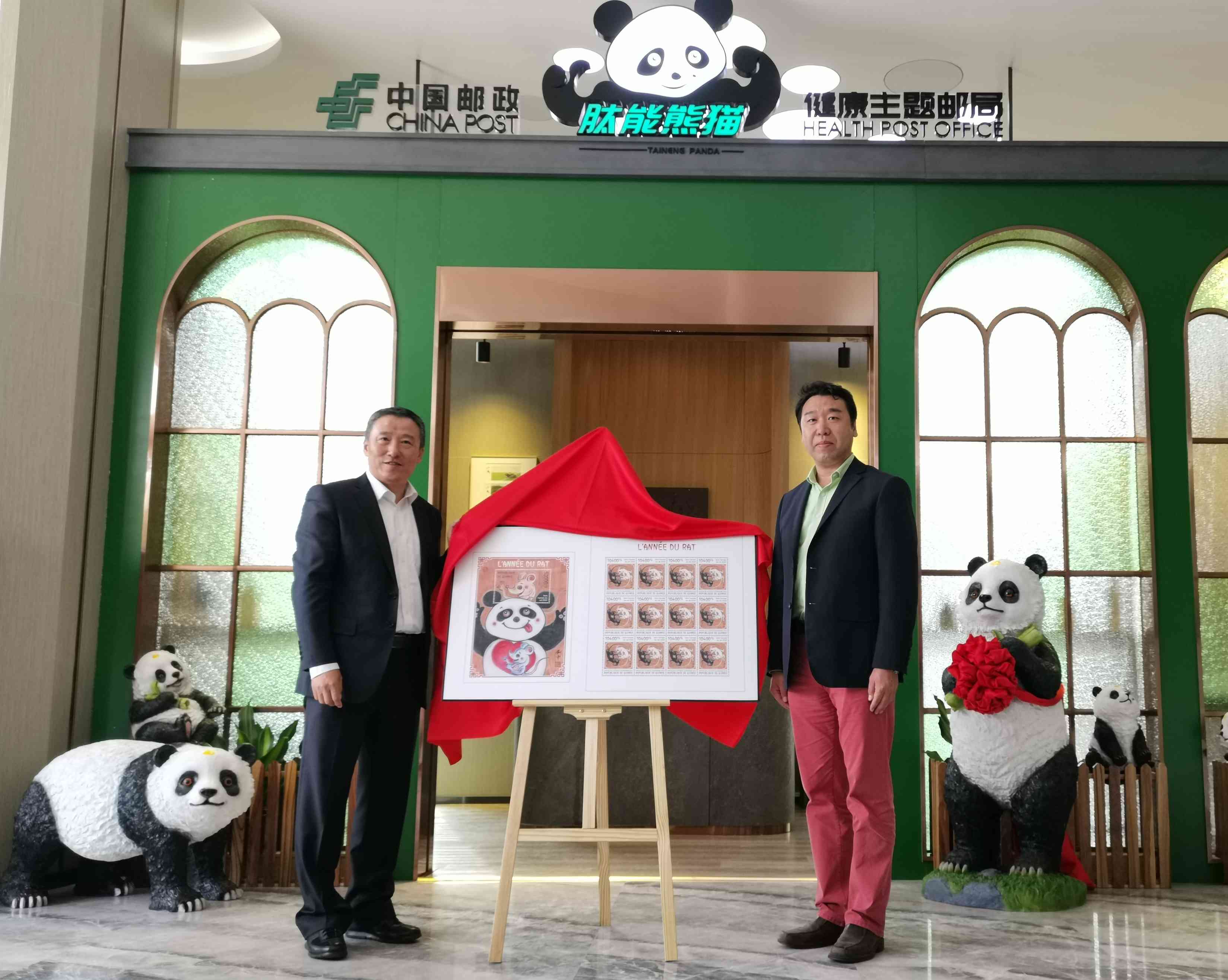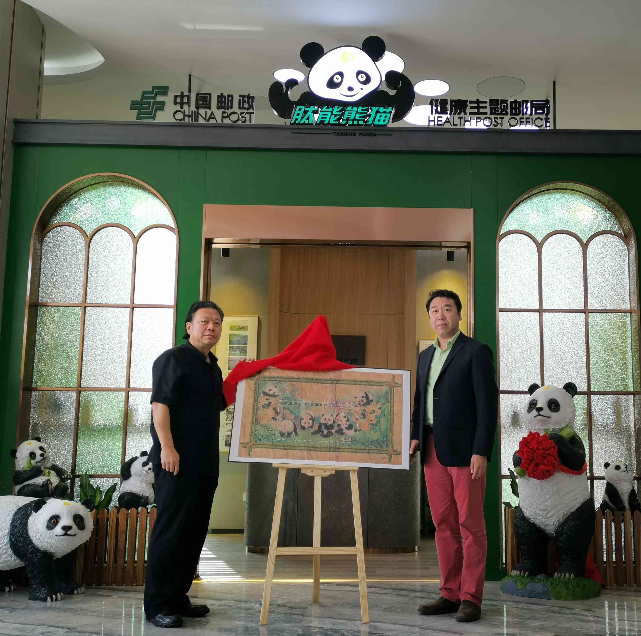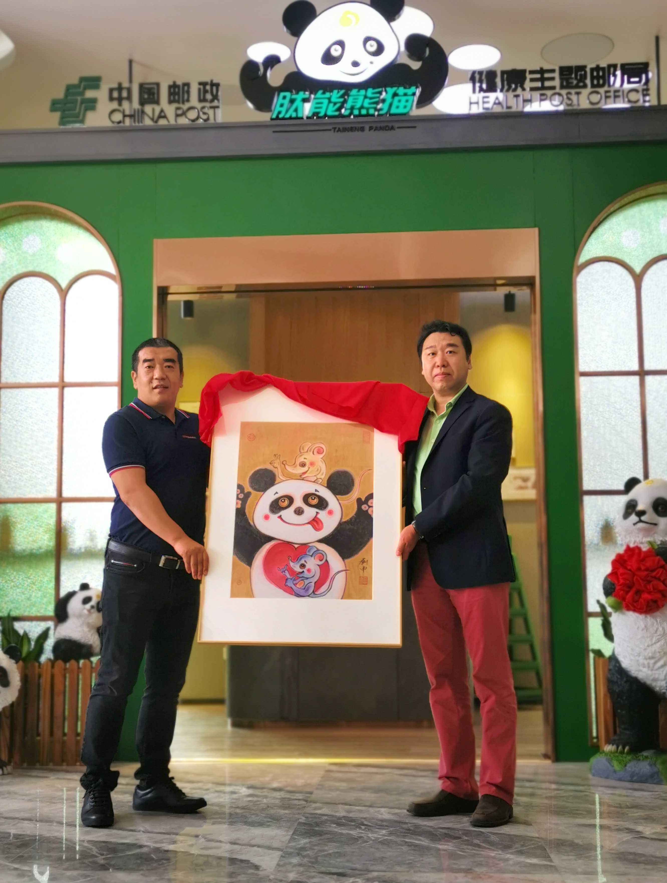 “肽能熊猫健康主题邮局”以打造绿色、健康的熊猫文创产品为起点,是服务人们日益增长的日常生活需求为核心的文化惠民平台。吉布提邮政发行《中华人民共和国成立七十周年》木质小型张一枚、几内亚邮政发行《庚子年》邮票一套及限量版画均以刘中先生的大熊猫主题国画作品为原型制作印制发行,充分体现了“一带一路”国家战略在文化领域取得的可喜成果。