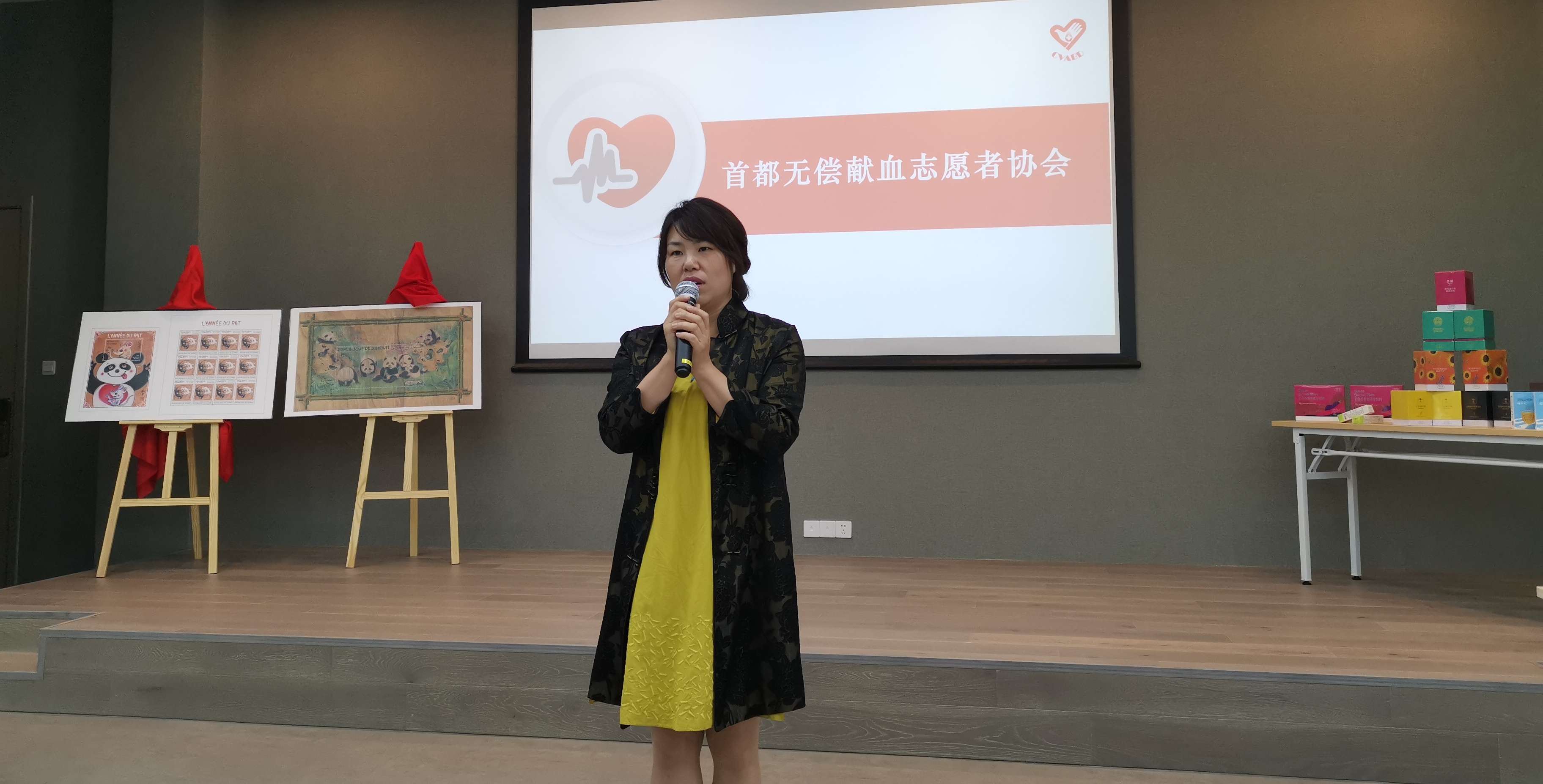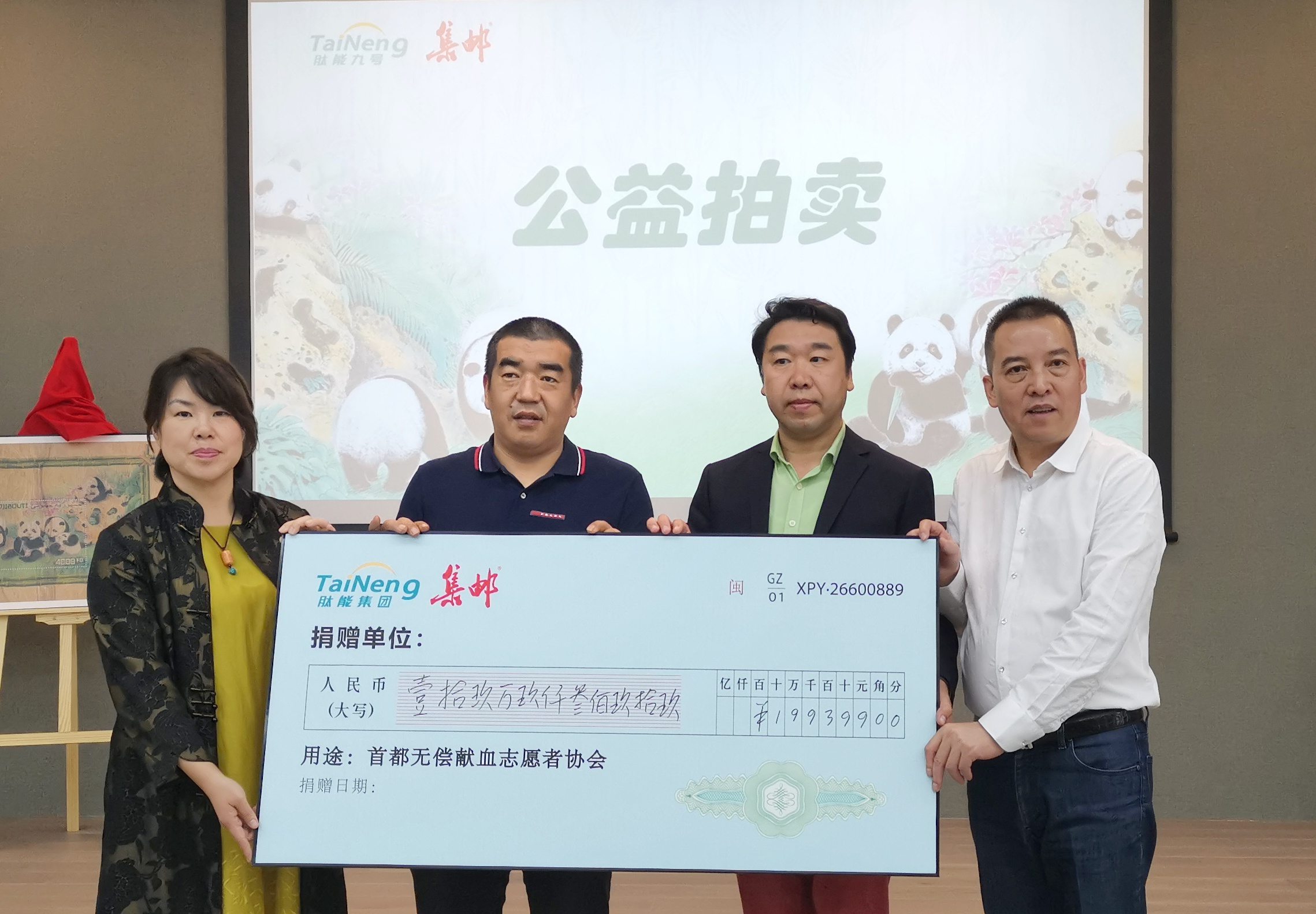 活动期间,在集邮杂志社和肽能集团的协助下,刘中先生发起了邮票及限量版画的义拍活动。在场观众积极响应公益主张,竞拍激烈,最终筹得善款人民币199399元,全部捐献给首都无偿献血志愿者协会,专项用于贫困危重病人的用血需求。协会秘书长侯明女士来到现场,接收善款并做了感人至深的发言。