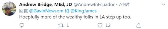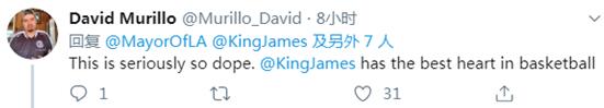 对詹姆斯这一举动,加州州长、洛杉矶市市长纷纷表达了感谢。