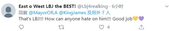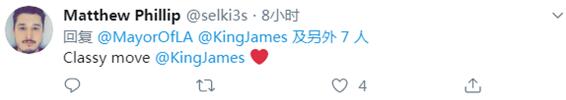 洛杉矶市市长艾瑞克•加切蒂也于30日发推文感谢詹姆斯的大力支持。↓